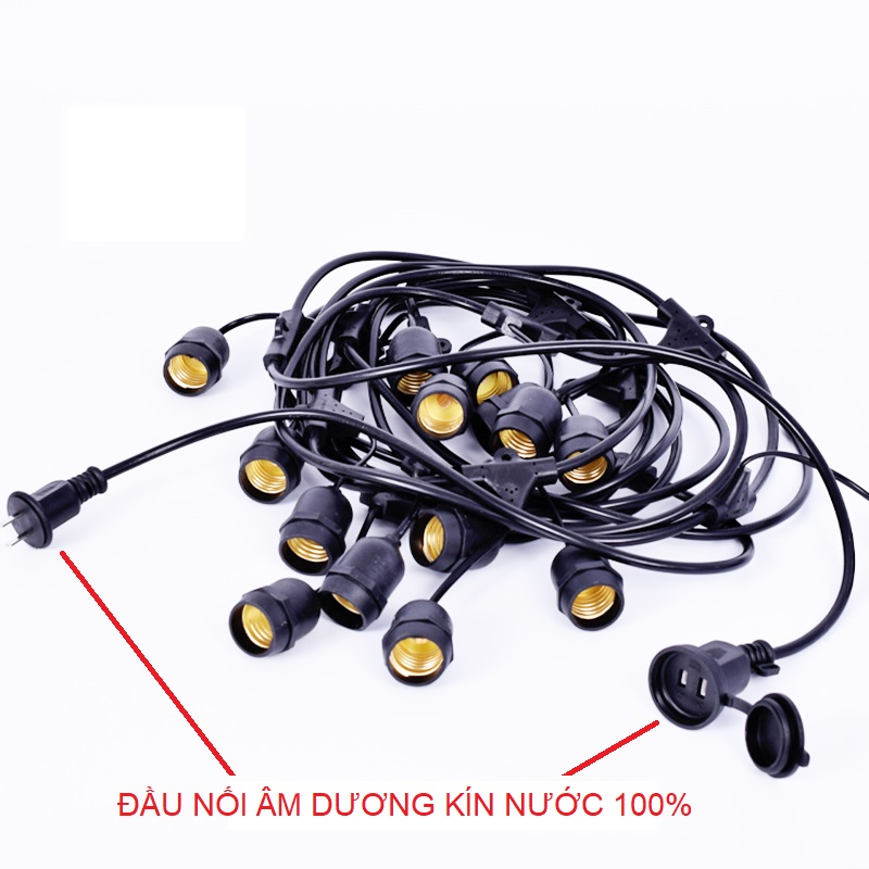 Dây đui ngoài trời là mẫu dây đui đèn chống nước thiết kế đui xoáy E27 đúc kín nước, đảm bảo độ an toàn điện tuyệt đối khi lắp đặt ngoài trời. Ngoài ra dây dẫn điện thiết kế chắc chắn, sử dụng vật liệu đồng cho tải trọng dây đạt trên 1000w, ngăn ngừa khả năng cháy chập xảy ra. Sản phẩm dây đui trang trí E27 kết hợp với mẫu đèn led filament, led búp là chọn lựa hoàn hảo cho trang trí sân vườn, trang trí cây, bảng hiệu ngoài trời.