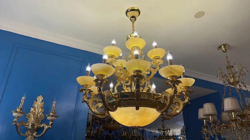 • Đèn chùm đồng bát đá thiết kế vô cùng sang trọng đẳng cấp, vừa làm đẹp cho không gian sống, vừa khẳng định được phong cách, địa vị của chính gia chủ. Thân đèn được sản xuất từ chất liệu đồng nguyên chất, với công nghệ sản xuất hiện đại cùng đôi bàn tay khéo léo của các nghệ nhân, đèn chùm đồng trang trí cuốn hút người xem chính bởi những đường nét chi tiết chạm khắc tinh xảo, đẳng cấp trên thân đèn.