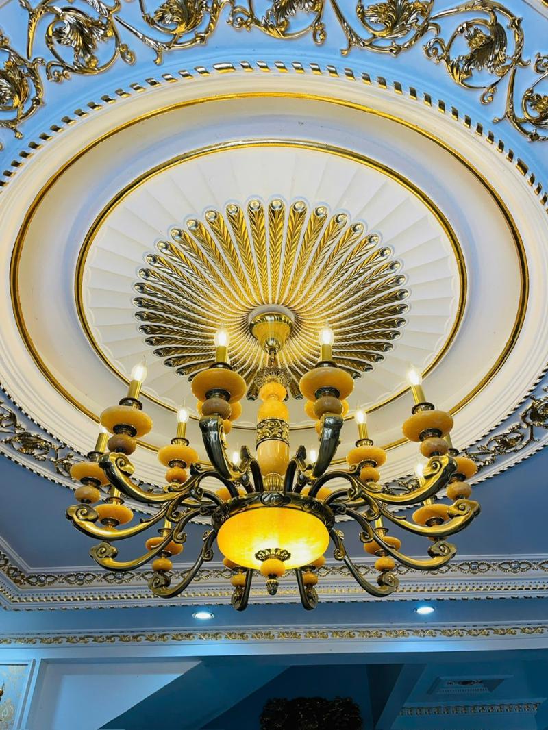 • Đèn chùm đồng bát đá thiết kế vô cùng sang trọng đẳng cấp, vừa làm đẹp cho không gian sống, vừa khẳng định được phong cách, địa vị của chính gia chủ. Thân đèn được sản xuất từ chất liệu đồng nguyên chất, với công nghệ sản xuất hiện đại cùng đôi bàn tay khéo léo của các nghệ nhân, đèn chùm đồng trang trí cuốn hút người xem chính bởi những đường nét chi tiết chạm khắc tinh xảo, đẳng cấp trên thân đèn.