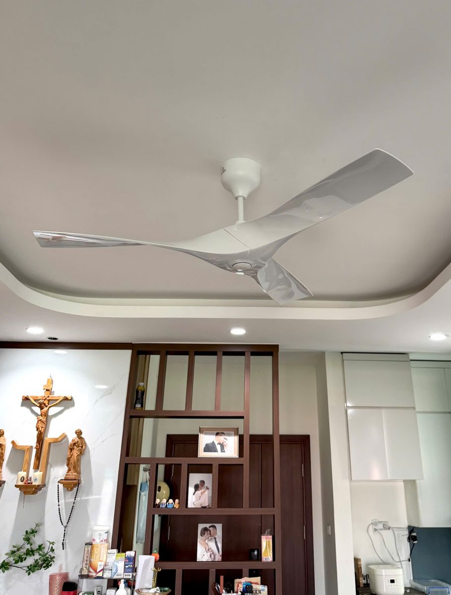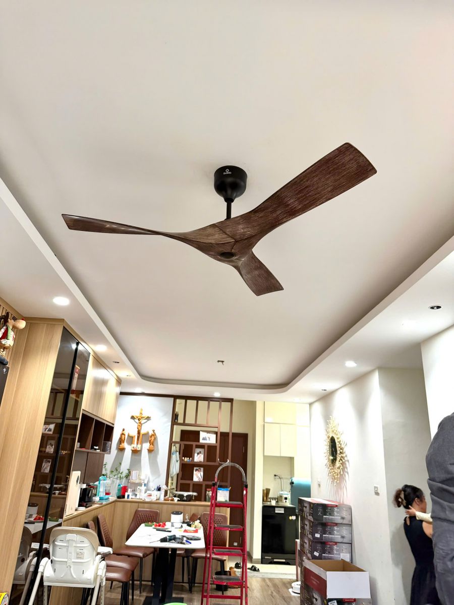 Quạt trần decor 3 cánh có điện áp sử dụng trung bình là 220V nhưng có khi đặt tới 250V. Động cơ DC siêu tiết kiệm điện 40W(tương đương với động cơ AC 90W)