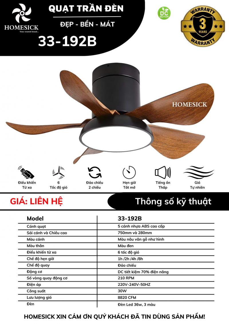 Quạt trần Homesick HS33-192B chắc hẳn là thương hiệu không còn quá xa lạ với người tiêu dùng Việt Nam hiện nay. Mẫu quạt trần cánh nhựa ABS HS33-192B hiện đang nhận được sự quan tâm đặc biệt của mọi người không chỉ ở khả năng làm mát mà còn là sản phẩm trang trí nội thất hiện đại, giúp nâng tầm không gian sống. Cùng Quạt trần Việt Quang tìm hiểu thông tin chi tiết về sản phẩm này dưới đây nhé!
