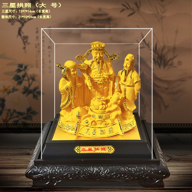 Tượng tam đa Phúc Lộc Thọ mạ vàng 24K hay Phước Lộc Thọ nói về ba điều cơ bản của một cuộc sống hạnh phúc là: Những điều lành, con cái (Phúc), sự thịnh vượng, may mắn (Lộc) và tuổi thọ (Thọ). Mỗi vị thần tượng trưng cho một điều mong ước. Người vô phúc (không có con cái) thì cuộc sống có được nhiều lộc và tuổi thọ cao đi nữa thì cũng không viên mãn. Tương tự như vậy, nếu không có lộc thì phúc và thọ bao nhiêu cũng không hạnh phúc. Ba vị này còn được gọi là Tam Đa và thường đi chung. Cả ba vị đều có khuôn mặt nhân hậu và nụ cười rất hoan hỷ.